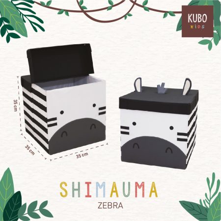 KUBO KIDS Kotak Penyimpanan Mainan Anak Ukuran 35x35x35 cm – Jungle Series Karakter Shimauma/Zebra